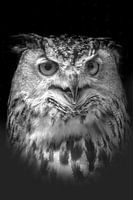 Een Oehoe uil poseert gewillig voor de camera. Deze foto kan ook mooi in rond formaat. De foto zowel in kleur als ook in zwartwit beschikbaar.