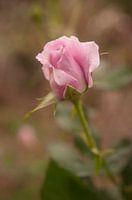 Portret van een roze roos. Steekt af op een bruine achtergrond. Simplistische natuur fotografie.