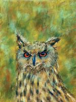 Over ‘Portret van een Siberische Adelaar Uil Pastel Schilderij’ van Karen Kaspar