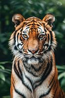 Laat de kracht en pracht van de natuur uw interieur verrijken met deze adembenemende foto van een tijger in zijn natuurlijke habitat. De intense blik van de tijger, gevangen in scherp detail, straalt zowel kracht als kwetsbaarheid uit, en de weelderige groene achtergrond creëert een gevoel van rust en sereniteit. Dit kunstwerk is een perfecte aanvulling op elke moderne leefruimte en zal zeker een gespreksonderwerp zijn.