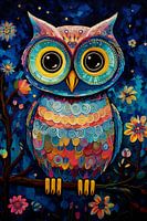Portret van een Uil is een digitaal schilderij van een uiltje met grote ogen. De levendige kleuren en details van het werk prikkelen de zintuigen en brengen leven in elke kamer.
