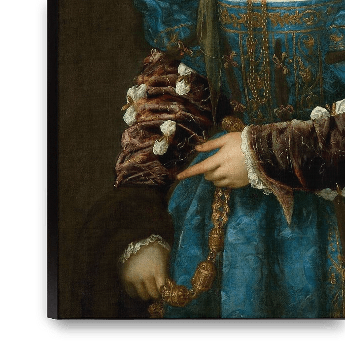 Koop Portret van een dame (La Bella), Titiaan als reproductie op canvas, aluminium dibond, (ingelijste) fotoprint, behang en ArtFrame, op maat geprint in Fine-Art kwaliteit.