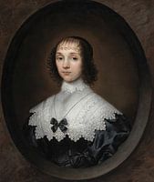 Portret van een dame in een zwarte jurk en kanten kraag, Cornelis Janssens van Ceulen (1636)