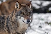 Koop de foto Portret van een grijze wolf van gea strucks op canvas, aluminium dibond, (ingelijste) fotoprint, behang en ArtFrame, op maat geprint in Fine-Art kwaliteit.
