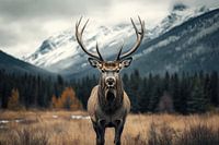 In de bergen van Canada staat een hert recht omhoog. Het is een prachtig beest met een prachtige vacht, die perfect past bij het ruige landschap. De groene bossen en rotsachtige bergen vormen een indrukwekkend decor voor het hert. Zijn grote ogen kijken nieuwsgierig de camera in, alsof hij het gevoel heeft dat je een geheim deelt. De lucht boven hem is helder en blauw, en de zon verlicht zijn mooie hoorns. Het lijkt alsof hij gewoon even poseert voor de camera, terwijl hij normaal door de natuur zwijgt. Deze foto laat zien hoe het hert op een natuurlijke manier samenkomt met zijn indrukwekkende omgeving.