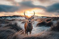 Portret van een hert in de duinen van Nederland van Digitale Schilderijen