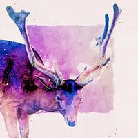 Digitaal kunstwerk van een hert met een prachtig gewei. Het is een modern kunstwerk voor iedereen die van de kleur paars houdt.