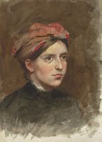 Portret van een jonge vrouw met een rode hoofddoek, Thérèse Schwartze