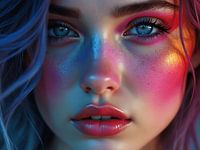 Dompel je onder in de wereld van het surrealisme met dit betoverende portret van een vrouw, waar kleur en fantasie de realiteit overstijgen.