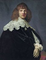 Portret van een jongeman, halflang, in een zwart fluwelen mantel en witte kanten kraag en manchetten.
