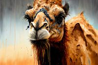 Een digitaal geschilderd portret van een Kameel. Het kleurpalet en de rauwe stijl van dit werk is geïnspireerd door roestig metaal. Dit kleurenpalet gecombineerd met de verf spetters creëeren een grungy en mysterieuze look. Het werk geeft dan ook een moderne industriële look aan uw interieur!