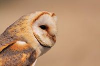 Portret van een kerkuil met een lichte achtergrond. Roofvogel gezicht