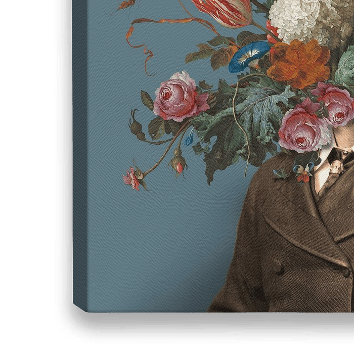 Olieverfschilderij ('Vase of Flowers' van Jan Davids de Heem en een vintage foto heb ik – inclusief een aantal aanpassingen – gecombineerd tot een surrealistische collage.