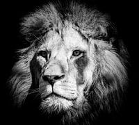Portret van een mannetjesleeuw in zwart-wit
