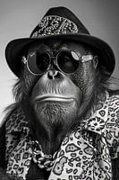 Stijlvolle zwart-wit afbeelding van een orang-oetan