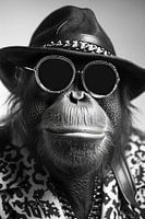 Stijlvolle zwart-wit afbeelding van een orang-oetan
