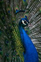 Portret van een trotse pronkende pauw met zijn verentooi omhoog