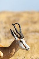 Koop de foto Portret van een springbok in de woestijn van Simone Janssen als print op canvas, aluminium dibond, (ingelijste) fotoprint, behang en ArtFrame. Voor jou op maat geprint in Fine-Art kwaliteit.