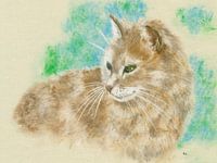 Portret van een tabby kat is een liggend formaat schilderij handgeschilderd met pastels door de kunstenaar Karen Kaspar.