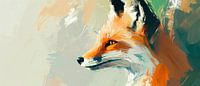 Een stralende, oranje vos met gloeiende ogen schittert bijna mystiek tegen een zachte, onscherpe achtergrond. De levendige penseelstreken brengen een sfeer van levendigheid en elegantie over. Perfect voor de woonkamer, brengt het warmte en een vleugje natuurlijke wildernis in elke kamer.
