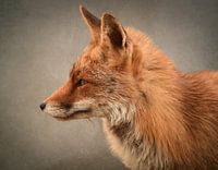 Foto van een vos je, digitaal bewerkt met een andere achtergrond in natuurlijke tinten.