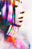 Portret van een vrouw in Abstract Waterverf Oranje Roze