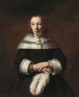 Portret van een dame met een struisvogelveer of waaier van struisvogelveren, Rembrandt van Rijn (1656/1658)