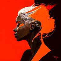 Een digitaal modern minimalistisch vrouwen portret met 3 kleur accenten, oranje, neon oranje en burnt sienna, is een kunstwerk dat de kracht van eenvoud weerspiegelt. Dit portret is vaak digitaal bewerkt om zo een eigentijdse en vernieuwende uitstraling te creëren.