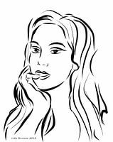 Op iPad geschetste vrouw op een witte achtergrond. Dynamische zwarte lijnvoering. Lijntekening.