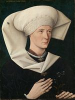 De grote witte hoofdtooi van de vrouw, waarvan de kalligrafische vorm is opgebouwd uit stijve, hoekige plooien, valt op tegen de donkere achtergrond. De arcering rond de plooien versterkt het gevoel van diepte, en de kunstenaar lijkt ons te willen laten denken dat een vlieg, misleid door zijn illusie, heeft geprobeerd op de hoofdtooi te landen. De vlieg maakt natuurlijk ook deel uit van het bedrog en is misschien bedoeld om het meesterschap van de kunstenaar te versterken.