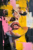 Dit indrukwekkende portret van een vrouw betovert met zijn levendige kleuren en expressieve penseelstreken. De sterke gele, roze en zwarte tinten creëren een sterk visueel contrast en geven het schilderij een krachtige uitstraling. De intense blik van de vrouw boeit de kijker en brengt een dynamische energie in elke kamer. Perfect voor…