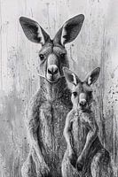 Dit kunstwerk toont een indrukwekkend portret van een kangoeroe met haar jong. De kracht en zachtheid van de dieren worden prachtig gevangen in een monochroom palet van zwart, wit en grijstinten. De realistische stijl en het oog voor detail maken dit een blikvanger in elke ruimte. Perfect voor liefhebbers van dieren en minimalistische…