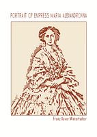 Minimalistische lijntekening van een klassiek schilderij: Portret van keizerin Maria Alexandrovna - Franz Xaver Winterhalter