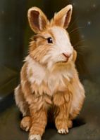 Dit schattige konijntje met zijn mooie heldere oogjes is digitaal getekend.