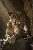 Portret van trotse leeuwin op rots van Imperial Art House