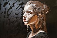Een elegant en krachtig portret van een jonge vrouw, weergegeven in een opvallende kubistische stijl. De combinatie van aardetinten met scherpe lijnen en licht-donkercontrasten maakt dit kunstwerk zowel expressief als tijdloos. Het krachtige gebruik van licht en schaduw benadrukt het emotionele karakter van de compositie. Ideaal als blikvanger in een moderne ruimte, zoals een woonkamer of kantoor, waar het zowel rust als dynamiek toevoegt. Deze unieke interpretatie van een portret nodigt uit tot contemplatie en inspireert tot nieuwe perspectieven.