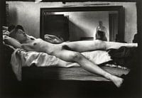 Portret van een vrouwelijk naakt met in de spiegel de fotograferende Breitner, George Hendrik Breitner, ca. 1890 - ca. 1910