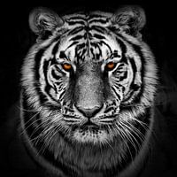 Koop dit portret Portret vane en serieuskijkende tijger van Chi als print op canvas, aluminium dibond, (ingelijste) fotoprint, behang en ArtFrame. Voor jou op maat geprint in Fine-Art kwaliteit.