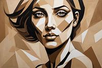 Dit verfijnde kunstwerk, uitgevoerd in monochrome beige tinten, belichaamt de harmonie van modern design en klassieke schoonheid. Het stuk, dat een vrouwelijk portret toont door de lens van kubistische interpretatie, weeft zachte aardetinten samen in een reeks geometrische vormen en vlakken. De scherpe lijnen en de subtiele gradiënten…