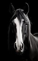 Paardenportret in zwart-wit, paardenkunst, paardenhuisdecoratie