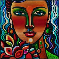 Dit werk uit de expressionistische serie zijn kleurrijke kleine portretten. De stijl waarin ik dit werk heb geschilderd is samengesteld uit verschillende figuratieve en expressionistische stijlen die door de eeuwen heen zijn gebruikt. Het kleurenpalet is sober maar kleurrijk om nogmaals de essentie van het portret te benadrukken.