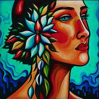 Dit werk uit de expressionistische serie zijn kleurrijke kleine portretten. De stijl waarin ik dit werk heb geschilderd is samengesteld uit verschillende figuratieve en expressionistische stijlen die door de eeuwen heen zijn gebruikt. Het kleurenpalet is sober maar kleurrijk om nogmaals de essentie van het portret te benadrukken.