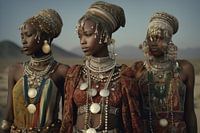 Portretten uit Afrika. Dit werk is onderdeel van de serie "Tribes", zie het album in mijn shop voor meer portretten. Je ziet meerdere vrouwen van een Afrikaanse stam in traditionele kleding en met authentieke sieraden. Een prachtig werk voor aan je muur!