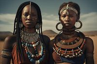 Portretten uit Afrika. Dit werk is onderdeel van de serie "Tribes", zie het album in mijn shop voor meer portretten. Je ziet twee vrouwen in een mix van moderne en traditionele kleding en met authentieke sieraden. Een prachtig werk voor aan je muur!