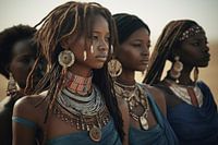 Portretten uit Afrika. Dit werk is onderdeel van de serie "Tribes", zie het album in mijn shop voor meer portretten. Je ziet vier vrouwen in een mix van moderne en traditionele kleding en met authentieke sieraden. Een prachtig werk voor aan je muur!