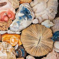 Koop dit schilderij Portugese Schelpen van Jolanda Oosterhoff als reproductie geprint op canvas, aluminium dibond, (ingelijste) fotoprint, behang en ArtFrame. Voor jou op maat geprint in Fine-Art kwaliteit.