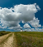 portugal, molen, weiland, bloemen, veldbloemen, wolken, wolkenlucht, voorjaar, zomer,