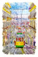 Digitaal aquarel in een straat in Lissabon (Portugal).