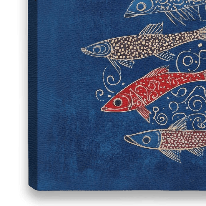 Koop dit schilderij Portugese vissen in lijntekening van Franka Poulain als reproductie op canvas, aluminium dibond, (ingelijste) fotoprint, behang en ArtFrame, op maat geprint in Fine-Art kwaliteit.