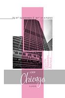 Klassiek stadsgezicht vanuit Chicago in een modern design. Coördinaten en andere informatie gaan samen met de lus om een minimalistische totaalindruk te creëren.